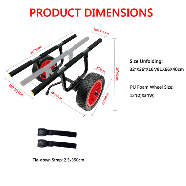 Eenvoudig laden met standaard: onze kajakkar-dolly is ontworpen voor eenvoudig gebruik van de kajak. Het beschikt over een handige standaard waarmee u de dolly kunt stabiliseren tijdens het laden en lossen van uw kajak.