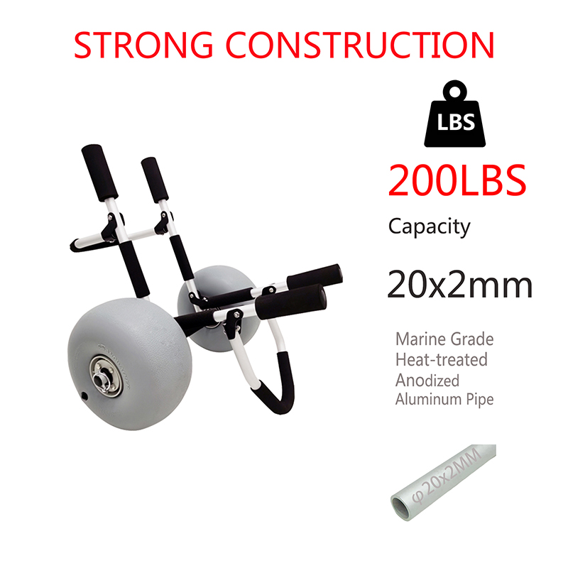 Materialen: De Surfboard Beach Cart is gemaakt van geanodiseerd aluminium, wat zorgt voor een lichtgewicht maar toch ongelooflijk duurzaam frame. Dit hoogwaardige materiaal is speciaal gekozen om bestand te zijn tegen de ontberingen van het dragen van zware surfplanken en andere strandspullen. Bovendien worden overal roestvrijstalen bouten en schroeven gebruikt, die voor extra sterkte en duurzaamheid zorgen en tegelijkertijd roest en corrosie voorkomen.