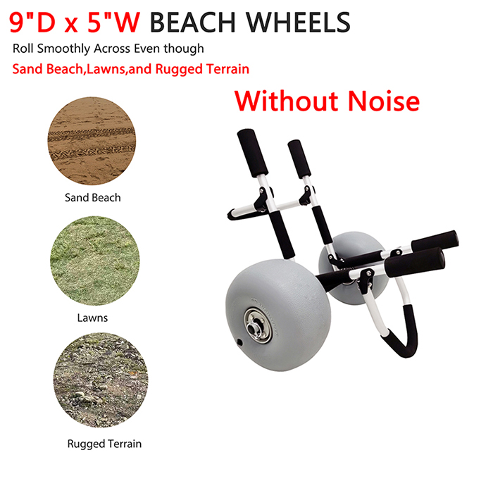 Wendbaarheid: Uitgerust met 10-inch ballonwielen, biedt de Surfboard Beach Cart uitstekende manoeuvreerbaarheid op het zand. Deze wielen zijn speciaal ontworpen om moeiteloos over zanderig terrein te glijden, waardoor u uw spullen gemakkelijk van en naar het strand kunt vervoeren. Geniet van een soepele en probleemloze transportervaring.